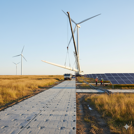 Many renewable energy projects require heavy trucks and cranes to reach isolated sites. Composite mats can be laid quickly to form temporary roads across soft ground. They spread weight evenly, preventing ruts and stuck vehicles. This keeps projects on schedule and reduces costly delays. In rural Texas, for example, mats help contractors bring in turbine blades that stretch more than 200 feet without sinking into farmland. Crews often report significant savings on towing costs and fewer weather-related interruptions when mats are used consistently.